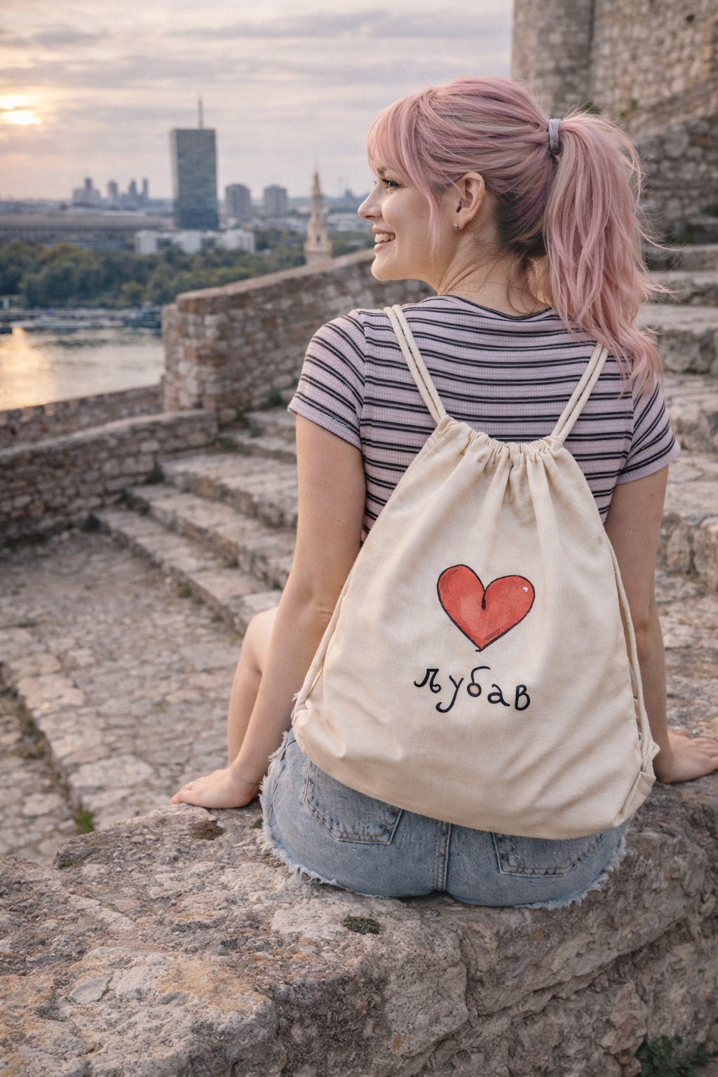 Birajte ranac od ekološkog materijala sa dizajnom crvenog srca i natpisom “љубав” kako biste istovremeno uživali u funkcionalnom dodatku i poslali poruku o važnosti ljubavi i brige za prirodu. Obradujte sebe ili dragu osobu ovim pažljivo osmišljenim proizvodom!